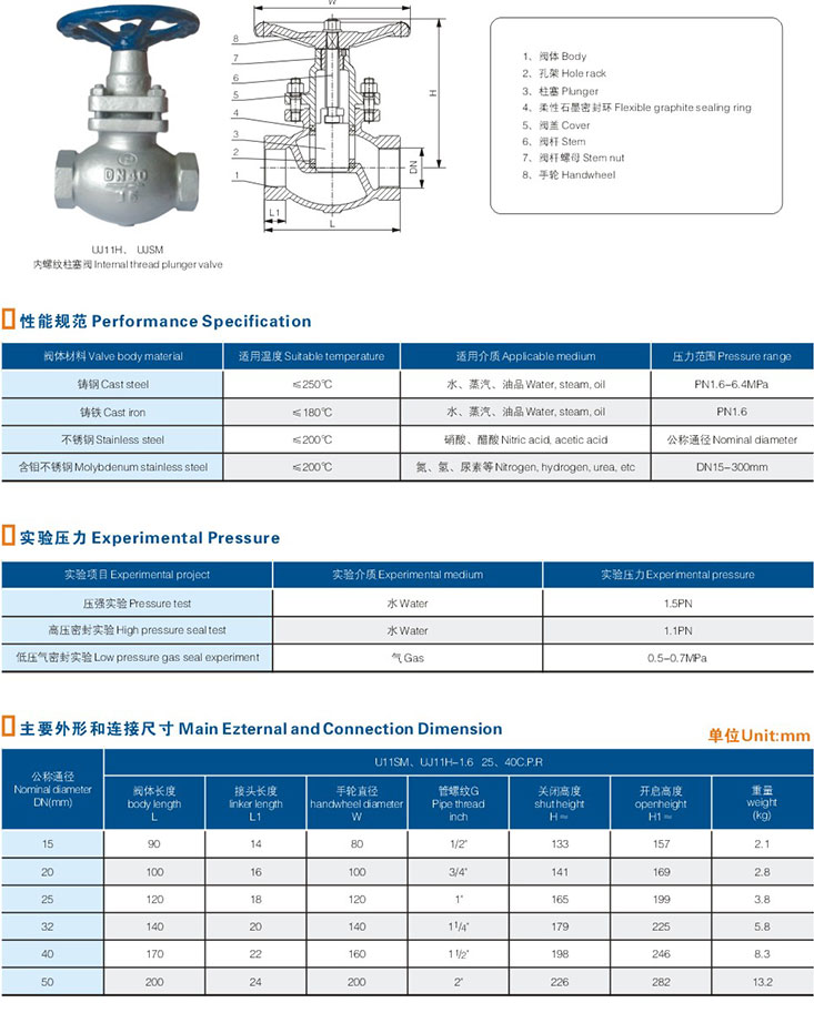 U11SM,UJ11H柱塞閥(內(nèi)螺紋)U11SM,UJ11H柱塞閥(內(nèi)螺紋)